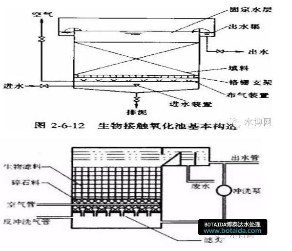 接觸生物法是一種兼有活性污泥法和生物膜法特點(diǎn)的一種新的污水生化處理方法。這種方法主要設(shè)備是生物接觸氧化濾池。在不透氣的曝氣池中裝有焦炭、礫石、塑料蜂窩等填料,填料被水侵沒(méi),用鼓風(fēng)機(jī)在填料底部曝氣充氧。