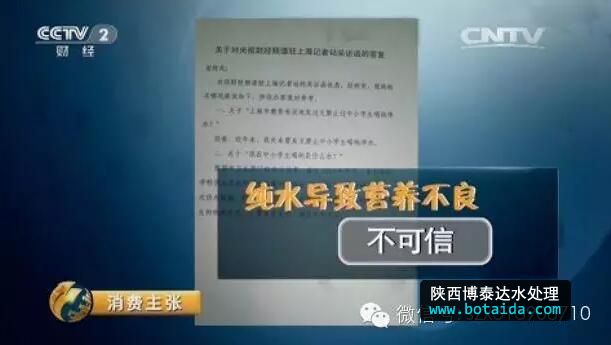 CCTV《消費主張》欄目,辟謠『喝純水會導致營養(yǎng)不良』。北京世紀壇醫(yī)院副院長指出:“人體內(nèi)營養(yǎng)均衡不可能指望水里的那點成分。我們平常的營養(yǎng),靠水來供應的話,非常非常少,所以說,如果說長期喝純凈水,引起營養(yǎng)不良,那跟喝水一點關系也沒有。”