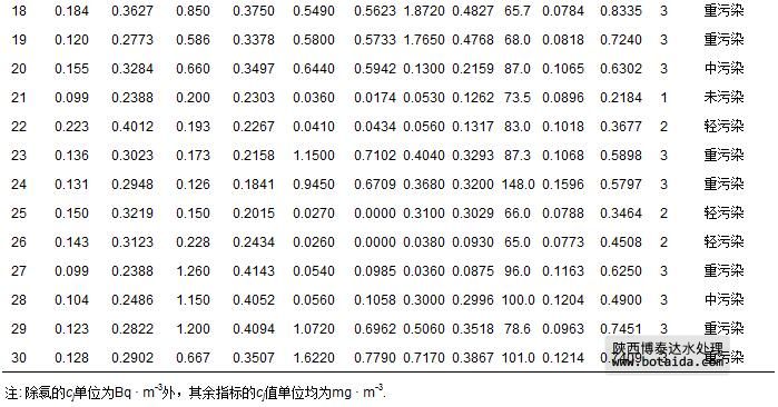 表 11 長春市30個室內(nèi)樣本監(jiān)測數(shù)據(jù)cj及其規(guī)范值 x′j和評價結果
