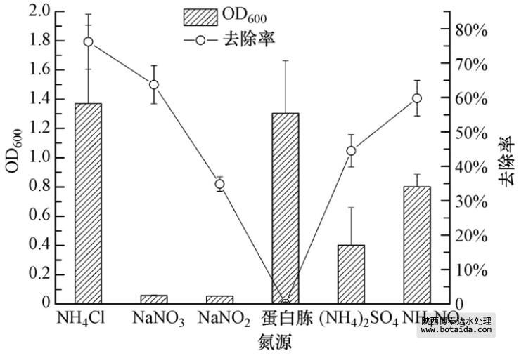 3.3.2 不同氮源對(duì)菌株ED-12的生長(zhǎng)及除磷能力的影響
