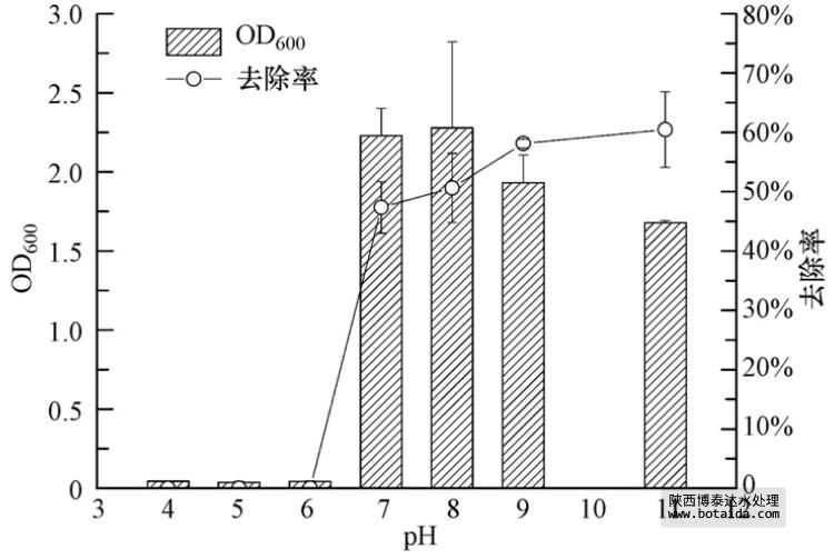 3.3.4 不同pH對(duì)菌株ED-12的生長(zhǎng)及除磷能力的影響