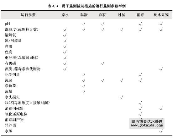 運(yùn)行監(jiān)測包括參數(shù)測量或者觀測活動(dòng)。所選定的運(yùn)行監(jiān)測參數(shù)應(yīng)能反映每步控制措施 的有效性,能及時(shí)指示運(yùn)行情況,并能很快地被測量,能及時(shí)采取適當(dāng)?shù)膽?yīng)對措施。像一些 可測量的變量,如余氯、 pH和渾濁度,或可觀察到的因子,諸如防蟲網(wǎng)的完整性。 腸道病原體和指示生物在運(yùn)行監(jiān)測中應(yīng)用有限,因?yàn)樘幚砗头治鏊畼铀钑r(shí)間太長,來 不及在供水之前對操作做出調(diào)整。