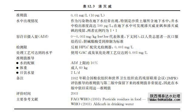涕滅威 (CASNo,116 06 3)是一種用于控制土壤中線蟲類和許多影響農(nóng)作物的昆 蟲和螨蟲類的內(nèi)吸性農(nóng)藥(見表12.3)。涕滅威極易溶于水,在土壤中遷移性大。降解主要 通過生物降解和水解,但這樣的降解方式需持續(xù)幾周或幾個(gè)月。
