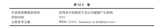 氨包括非離子化(NH3)和離子化(NH+ 4 )兩種形態(tài)。環(huán)境中的氨來(lái)自新陳代謝、農(nóng)業(yè)和 工業(yè)的加工處理過(guò)程和氯胺消毒過(guò)程。在地下水和地表水中氨的背景濃度常低于 0.2mg/L。不過(guò),厭氧條件下的地下水含有的氨可高達(dá)3mg/L。密集飼養(yǎng)動(dòng)物會(huì)大幅度增 加地表水中的氨。氨的污染也可能來(lái)自水泥灰漿管道的襯里析出。水中的氨是水可能受細(xì) 菌、污水和動(dòng)物排泄物污染的指示指標(biāo)(見(jiàn)表12.6)。