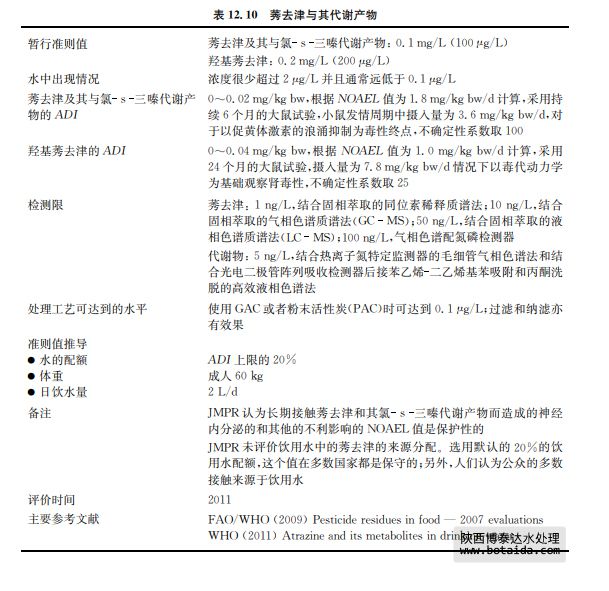 莠去津是一種選擇性三聚氯氰類除草劑,用于控制一年生闊葉雜草和禾本科雜草。莠 去津與氯 s 三嗪代謝產(chǎn)物———二乙烷基 莠去津、二異丙基 莠去津和二氨基氯三嗪,由于 莠去津作為預(yù)作用和早期的后處理除草劑使用而在地表水和地下水中被發(fā)現(xiàn)。代謝物羥基 莠去津在地下水中檢測(cè)到的比地表水中多(見表12.10)。