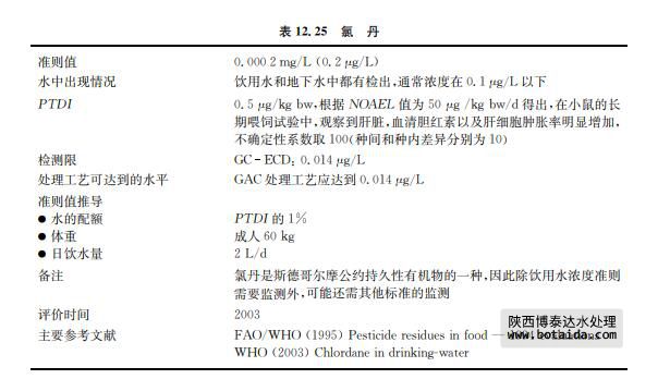 氯丹(CASNo.57 47 9)自1947年開始使用,是一種廣譜殺蟲劑(見表12.25)。目 前,許多國家已經(jīng)開始嚴(yán)格限制氯丹的使用,現(xiàn)僅通過液下噴射的方式用于殺除土壤中的白 蟻。經(jīng)液下噴射使用時,氯丹會成為地下水污染的潛在污染源,但濃度較低。氯丹工業(yè)品是 混合物,主要由順式和反式氯丹組成。氯丹不易自然降解,在土壤中不易遷移也不易進(jìn)入地 下水(僅少量檢出)。氯胺易散失進(jìn)入大氣。雖然食物中所含氯胺的濃度水平一直在降低, 但氯胺具有持久性和較強的生物累積可能。