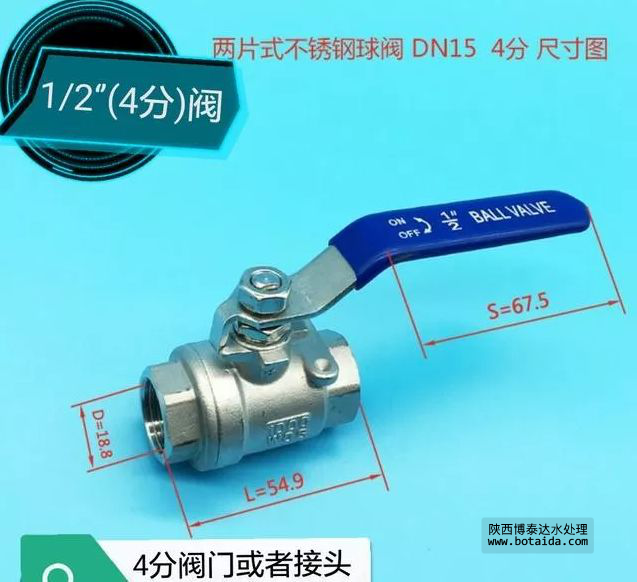 如下圖:1/2英寸即為4分閥(DN15)公稱通徑15,螺紋內徑約為19mm左右。
