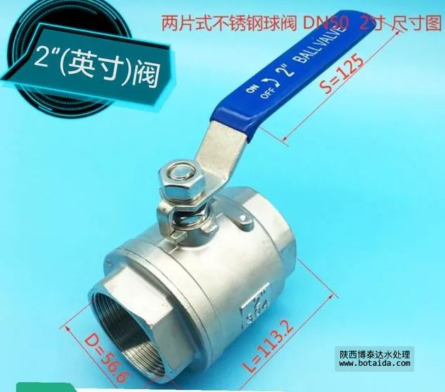 下圖為2′(英寸)DN50的閥門,公稱通徑為50,內螺紋內徑約為56mm左右