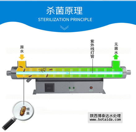 紫外線滅菌器:利用紫外線(波長200~400nm)對養(yǎng)殖用水進(jìn)行消毒,殺滅水中各種病微生物。