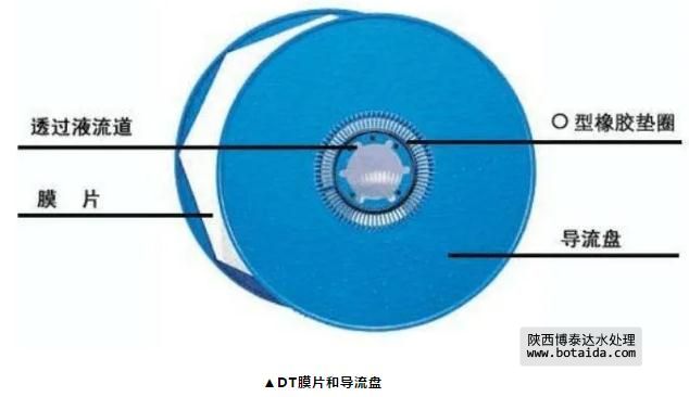 在該工藝中不需要實(shí)現(xiàn)污染物質(zhì)的最終去除,僅為分離作用,因此,運(yùn)行能耗大大降低;DT組件內(nèi)部任何單個(gè)部件均允許單獨(dú)更換。過(guò)濾部分由多個(gè)過(guò)濾膜片及導(dǎo)流盤裝配而成,當(dāng)過(guò)濾膜片需更換時(shí)可進(jìn)行單個(gè)更換,對(duì)于過(guò)濾性能好的膜片仍可繼續(xù)使用,這最大程序減少了換膜成本。