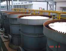 催化微電解是在不通電的情況下,利用微電解設(shè)備中填充的微電解填料產(chǎn)生“原電池”效應(yīng)對廢水進(jìn)行處理。當(dāng)通水后,在設(shè)備內(nèi)會形成無數(shù)的電位差達(dá)1.2V 的“原電池”。“原電池”以廢水做電解質(zhì),通過放電形成電流對廢水進(jìn)行電解氧化和還原處理,以達(dá)到降解有機(jī)污染物的目的。在處理過程中產(chǎn)生的新生態(tài)[.O H] 、[H] 、[O]、Fe2+ 、Fe3+等能與廢水中的許多組分發(fā)生氧化還原反應(yīng),比如能破壞有色廢水中的有色物質(zhì)的發(fā)色基團(tuán)或助色基團(tuán),甚至斷鏈,達(dá)到降解脫色的作用;生成的Fe2+ 進(jìn)一步氧化成Fe3 +,它們的水合物具有較強(qiáng)的吸附- 絮凝活性,特別是在加堿調(diào)pH 值后生成氫氧化亞鐵和氫氧化鐵膠體絮凝劑,它們的絮凝能力遠(yuǎn)遠(yuǎn)高于一般藥劑水解得到的氫氧化鐵膠體,能大量絮凝水體中分散的微小顆粒、金屬粒子及有機(jī)大分子。該工藝具有適用范圍廣、處理效果好、成本低廉、處理時(shí)間短、操作維護(hù)方便、電力消耗低等優(yōu)點(diǎn),可廣泛應(yīng)用于工業(yè)廢水的預(yù)處理和深度處理中。應(yīng)用廢水種類:染料廢水、焦化廢水、醫(yī)藥廢水、農(nóng)藥廢水、樹脂廢水、助劑廢水、制革廢水、電鍍廢水、造紙廢水、淀粉廢水、大蒜廢水、垃圾滲濾液等工業(yè)類廢水。