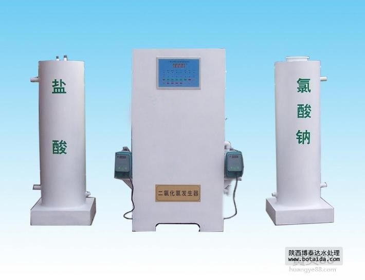 二氧化氯發(fā)生器以鹽酸和氯酸鈉為原料,采用負壓曝氣工藝,生產(chǎn)以二氧化氯為主,氯氣為輔的復合消毒液。領域涉及飲用水、二次供水、游泳池水、醫(yī)院污水、工業(yè)循環(huán)冷卻水、中水回用等。反應原理:NaClO3+2HCl=ClO2+1/2 Cl2 +NaCl + H2O
